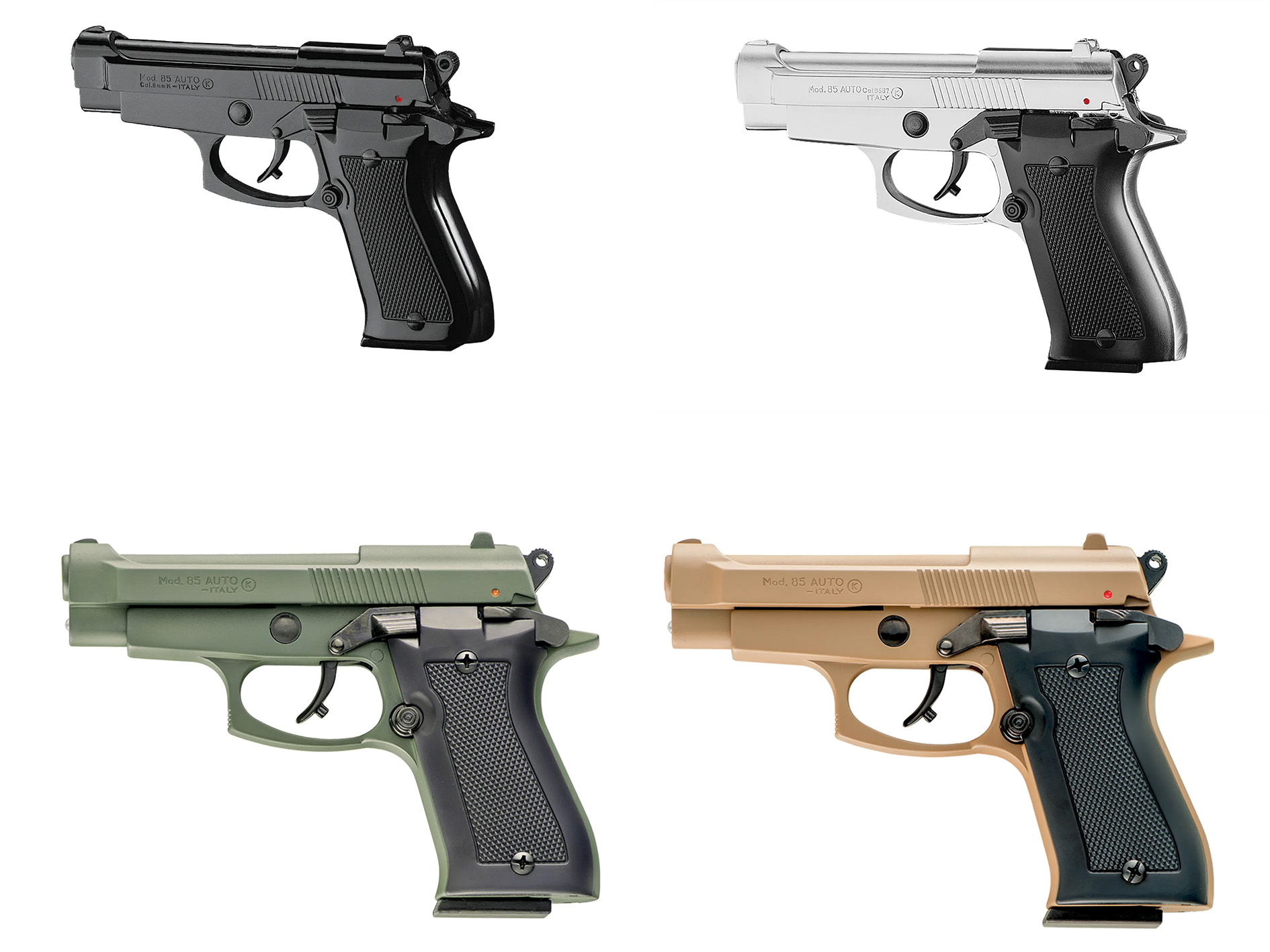 La Kimar 85 Auto è una pistola a salve compatta e versatile, progettata per simulare l’aspetto e il funzionamento di un’arma da fuoco autentica. Perfetta per allenamenti, scenari di simulazione e collezionismo, offre un’esperienza realistica grazie alla sua struttura robusta e al design fedele. Facile da maneggiare, è la scelta ideale per chi cerca una pistola a salve affidabile e dal design accattivante. E’ disponibile in calibro 8mm e 9mm PA e 4 diverse colorazioni: nero, cromo, verde e tan.