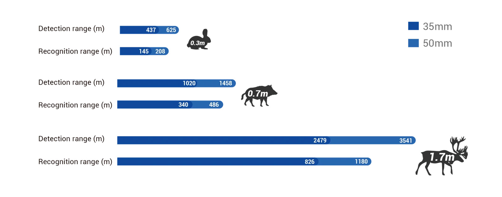 Sensibilità (NETD): Estremamente elevata, inferiore a 20 mK, ideale per distinguere piccoli dettagli anatomici dell'animale anche sotto la pioggia.